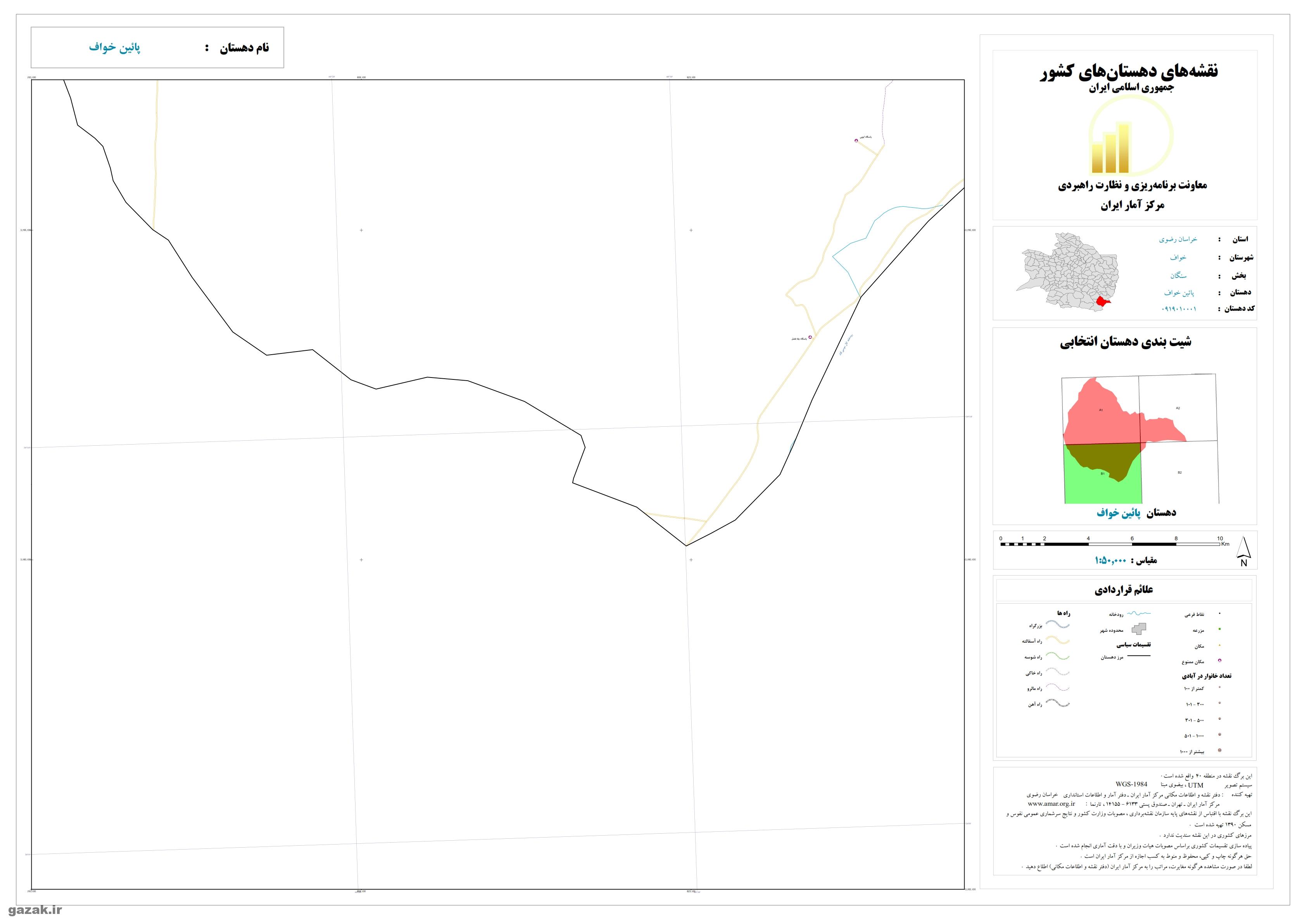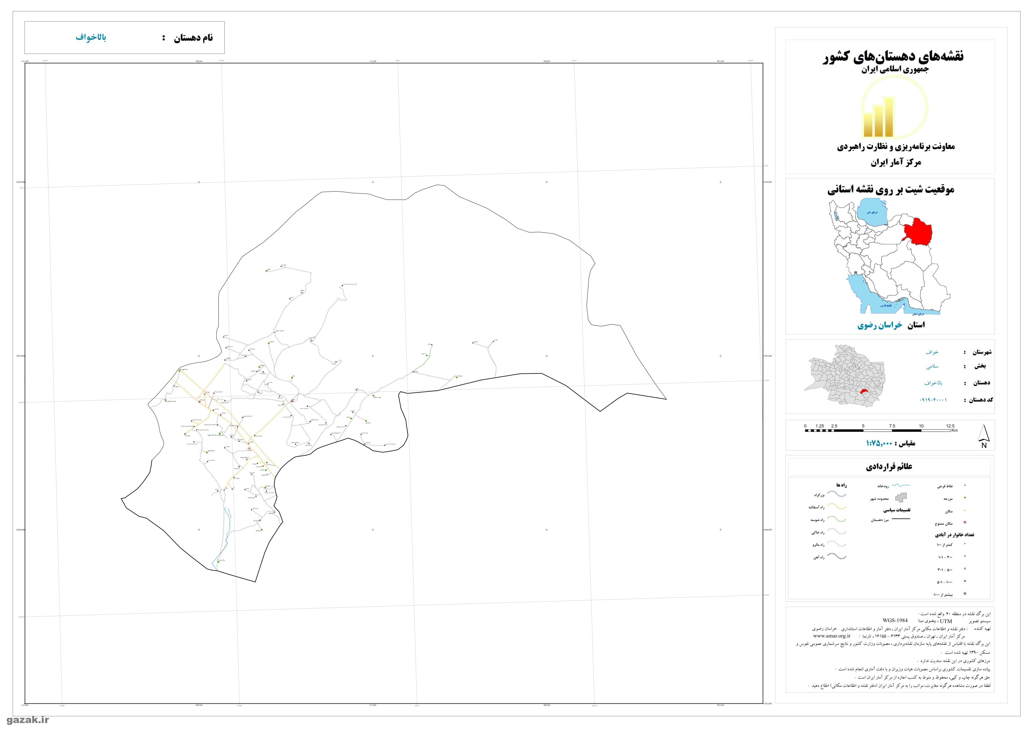 نقشه ها شامل نقشه روستای بالاخواف، نقشه روستای بستان، نقشه روستای کیبر، نقشه روستای میان خواف، نقشه روستای نشتیفان، نقشه روستای پائین خواف، نقشه روستای سلامی، نقشه روستای زوزن می شود.